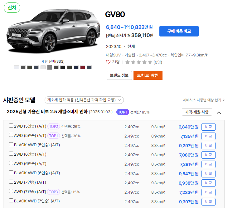 2025 제네시스 GV80 유지비