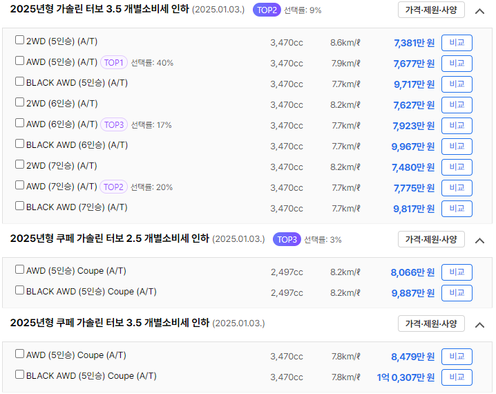 - 엔진 종류: 가솔린 터보 2.5, 가솔린 터보 3.5