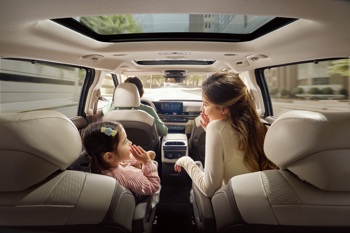 넓고 안락한 실내는 고급스러운 소재로 마감되었습니다. 가족 여행 시 편안함을 제공합니다.