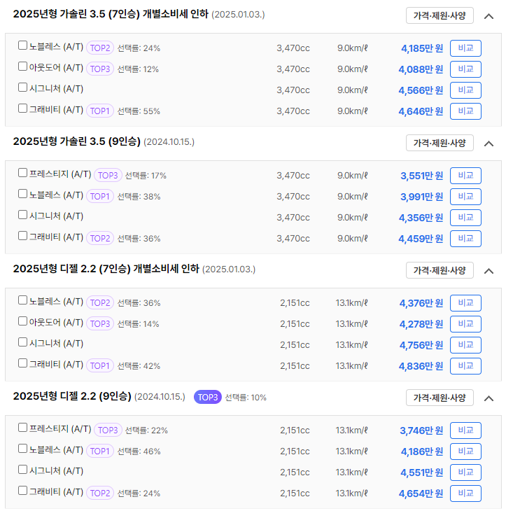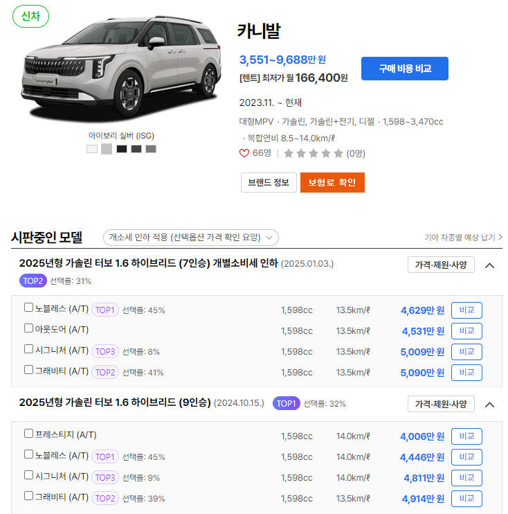 2025 카니발 하이브리드의 가격은 트림과 옵션에 따라 다양합니다:
