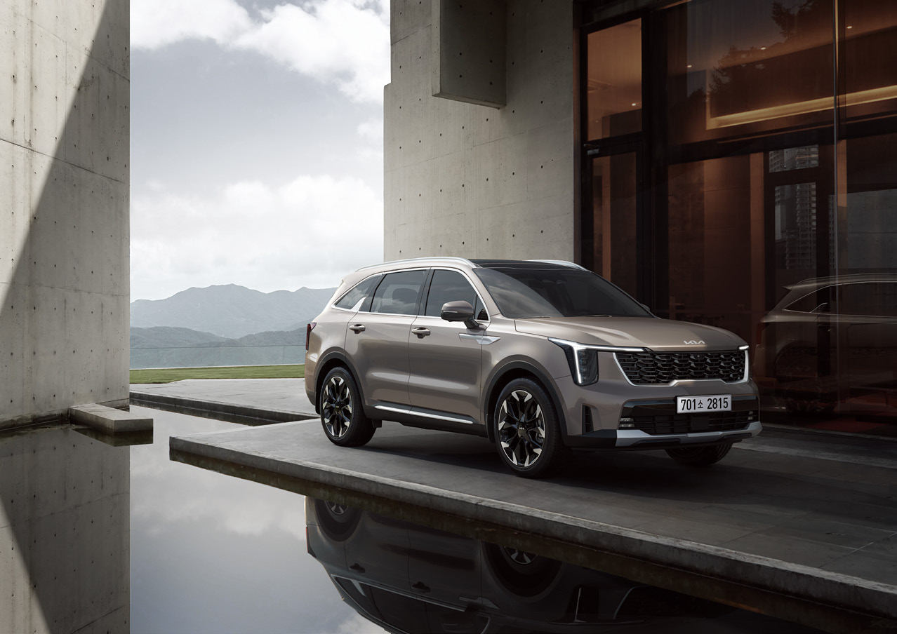 쏘렌토 하이브리드는 대담하고 현대적인 외관 디자인을 자랑합니다. 다이내믹한 전면 디자인과 유려한 라인이 특징이며, LED 헤드램프와 리어 램프는 시각적 감각과 안정성을 동시에 제공합니다.